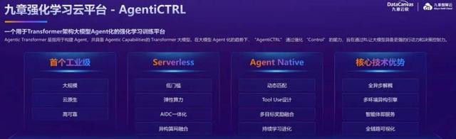 这一背景下,谁能率先打造出真正适配强化学习的大规模智能计算平台,谁就有机会在新一轮的 AI 基础设施竞争中占据高地。2025 年 6 月,九章云极正式发布业界首个工业级强化学习云平台 AgentiCTRL,这也是全球首个支持万卡级异构算力调度的强化学习基础设施平台。