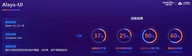 这些能力也得到了实际验证。举个例子,使用 AgentiCTRL,九章云极针对颇具挑战性的 Computer Use 任务对基础模型 Qwen-VL-2.5-7B 进行了后训练,最终得到了智能体 Alaya-UI。